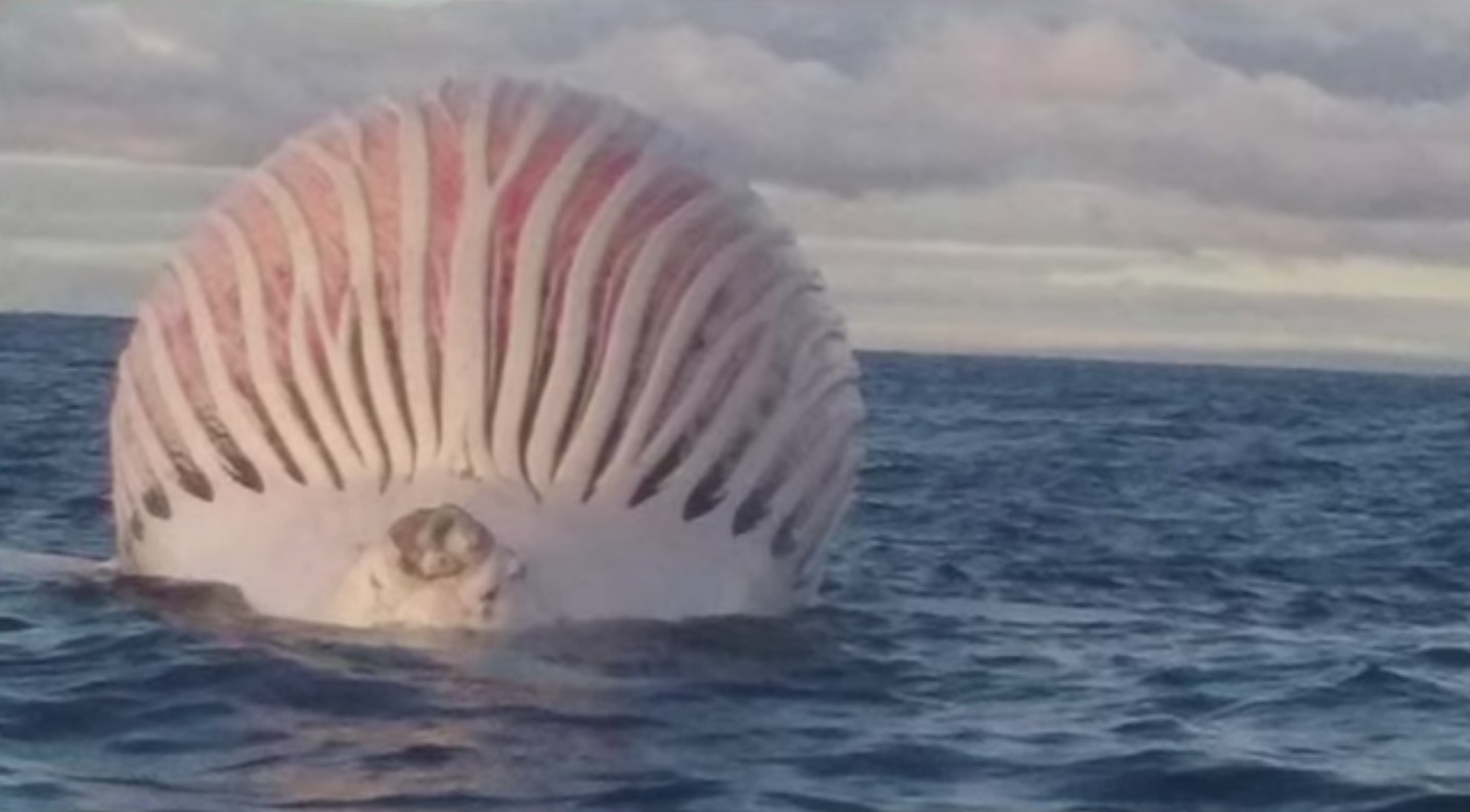 Dieser riesige, rosafarbene, alienhaft anmutende “Ball“ wurde von Fischern aufgefunden, und ist eigentlich der aufgeblähte Kadaver eines Wals.
