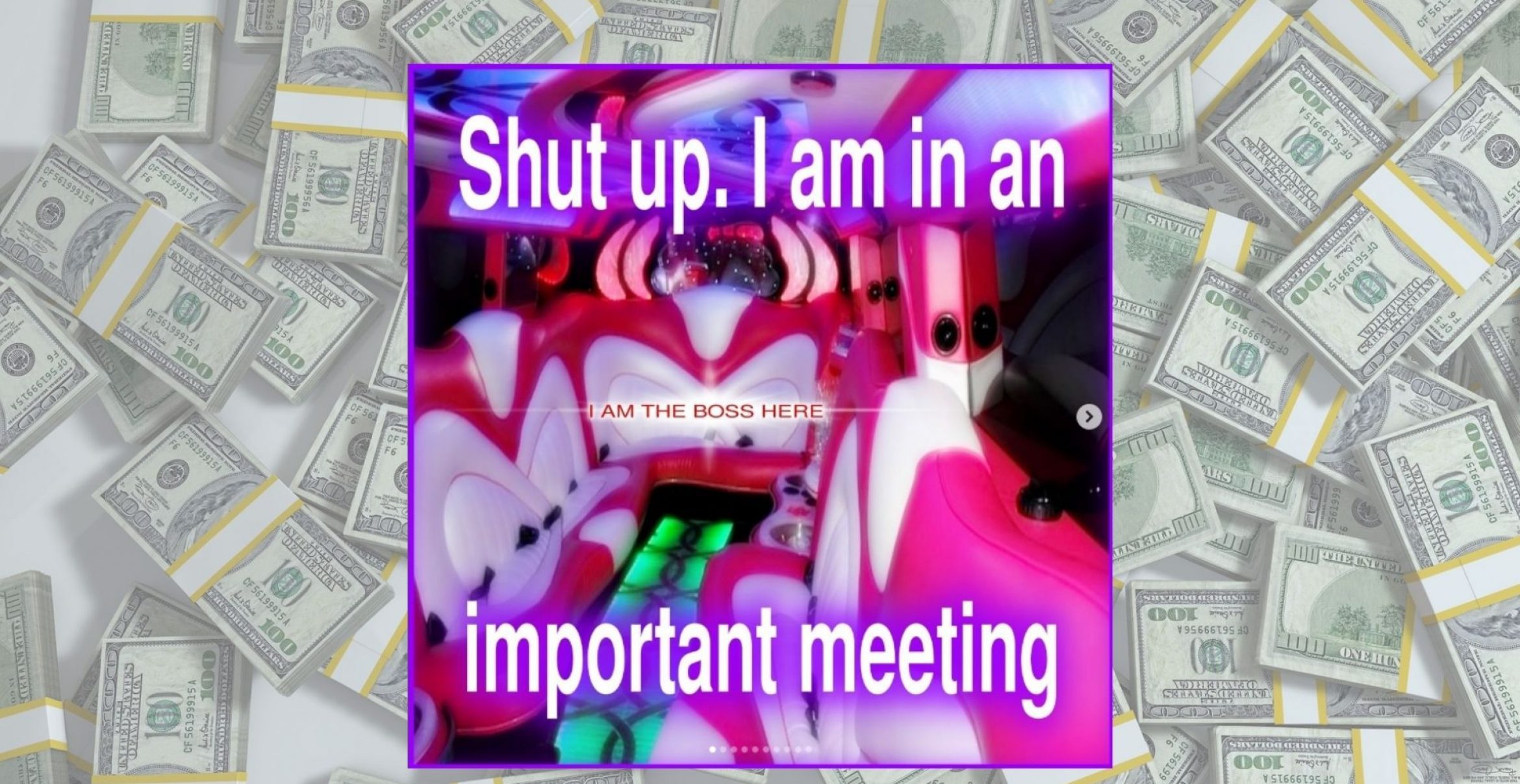 Es ist eine wilde Sammlung von Motivationsbildern, die Erfolg, Reichtum, Glück, Freundschaft versprechen. Oder auch nur „It’s never too late to collect trash for cash“.