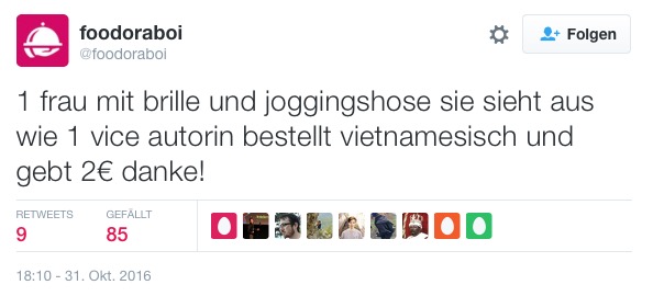 Deluxe & Destinations Ein Foodora-Lieferant, der seine Erlebnisse auf Twitter teilt, ist unser anonymer Held des Jahres
