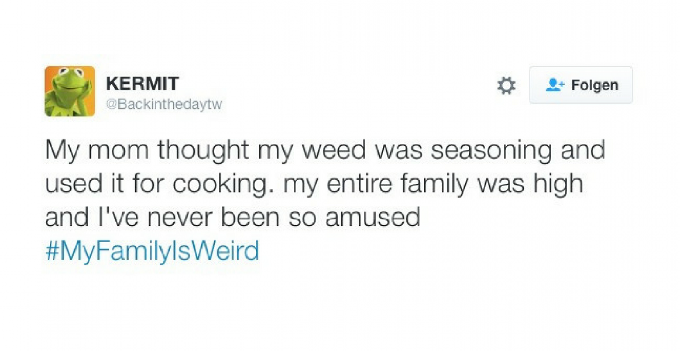 Ihr glaubt eure Familie ist ein bisschen verrückt? Keine Sorge, ihr seid bei weitem nicht die einzigen. Wahrscheinlich hat jede Familie das eine oder andere etwas weirde Familienmitglied. Und mit solchen Menschen lassen verrückte Situationen da natürlich nicht lange auf sich warten. Wie wärs mit „Hanf in der Familiensuppe“ oder „Fahrstunden mit dem Onkel auf dem Friedhof“? In seiner Show rief der US-amerikanische Comedian Jimmy Fallon seine Zuschauer auf, unter dem Hashtag #MyFamilyIsWeird die verrücktesten Geschichten zu teilen. Diese zehn Tweets haben uns dabei besonders gut gefallen: