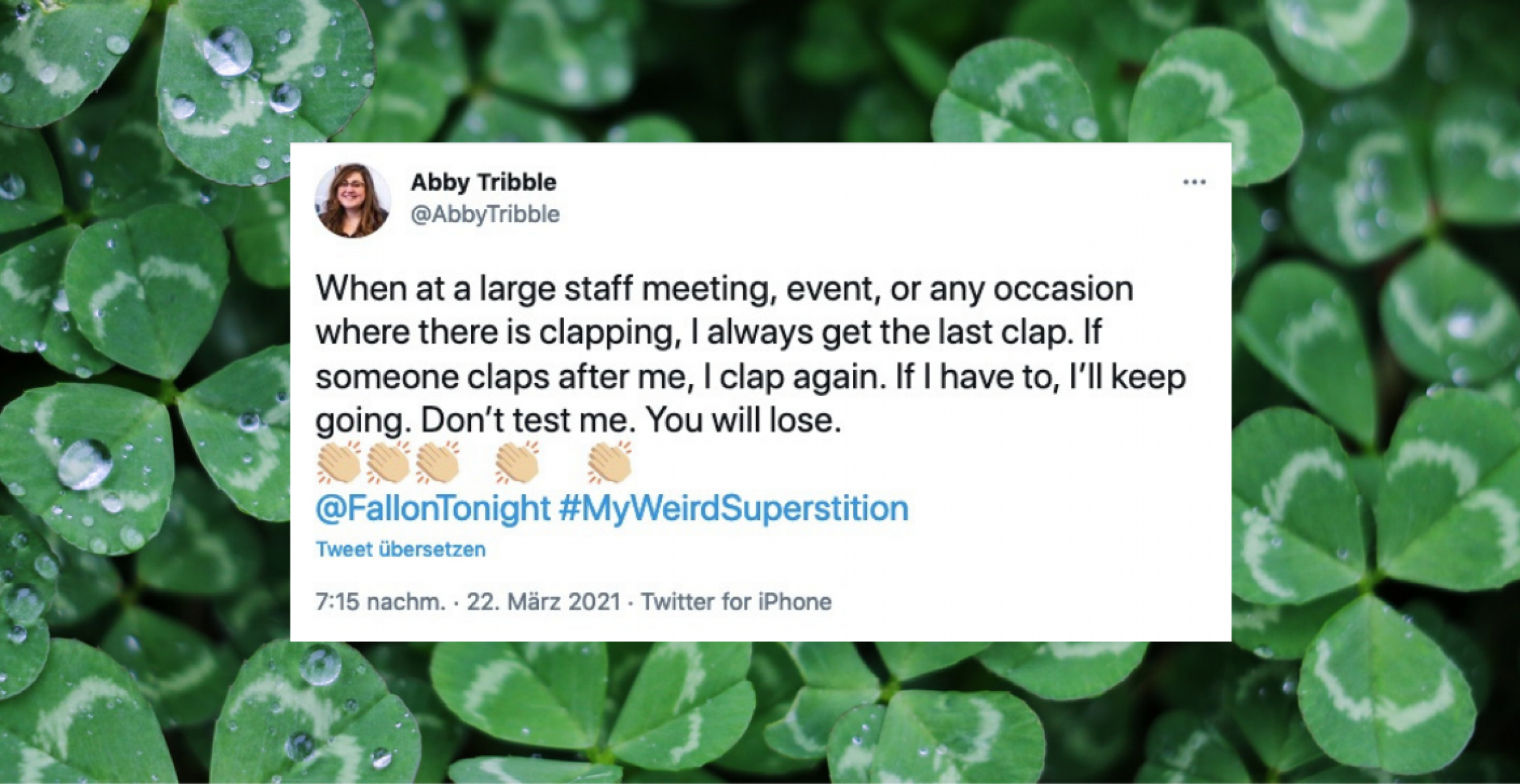 Nun hat Fallon erneut eine Tweet-Runde gestartet. Unter #myweirdsuperstition teilen seine Follower:innen ihre verrücktesten und lustigsten Aberglauben-Geständnisse.