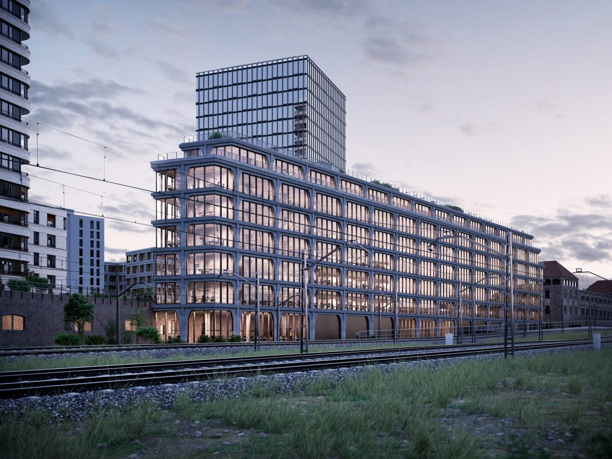 Ein weiteres, optisches Highlight: Die Gestaltung des Neubaus greift konzeptionell die baulichen und gestalterischen Elemente der benachbarten Postbahnhof-Altbauten auf und interpretiert diese in sehr eigenständiger Weise neu. Aber seht selbst, hier eine kleine Sneak Peek, wie das Ganze aussehen wird, wenn es in Q4 2023 (laut Plan) fertiggestellt wird.