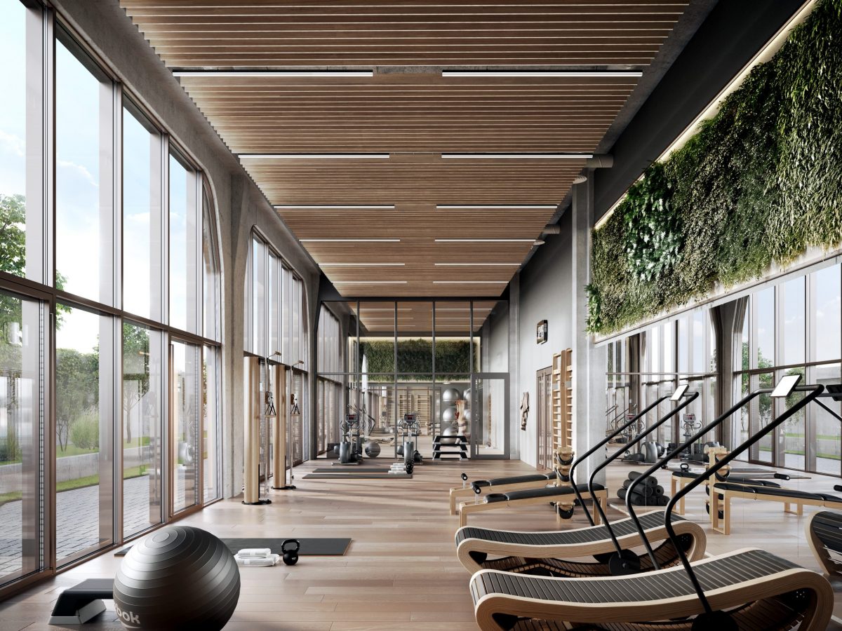 Außerdem wird auf 95 Prozent der Dachflächen eine intensiv begrünte Dachlandschaft entstehen, die als Rückhaltereservoir für einen natürlichen Wasserkreislauf genutzt wird. In Verbindung mit einer großen Zisterne und einem hocheffizienten Wasserfiltersystem gelingt es so, im Jahr mindestens 50 Prozent des Wasserbedarfs für die Aussenanlagen über Regenwasser zu decken.
