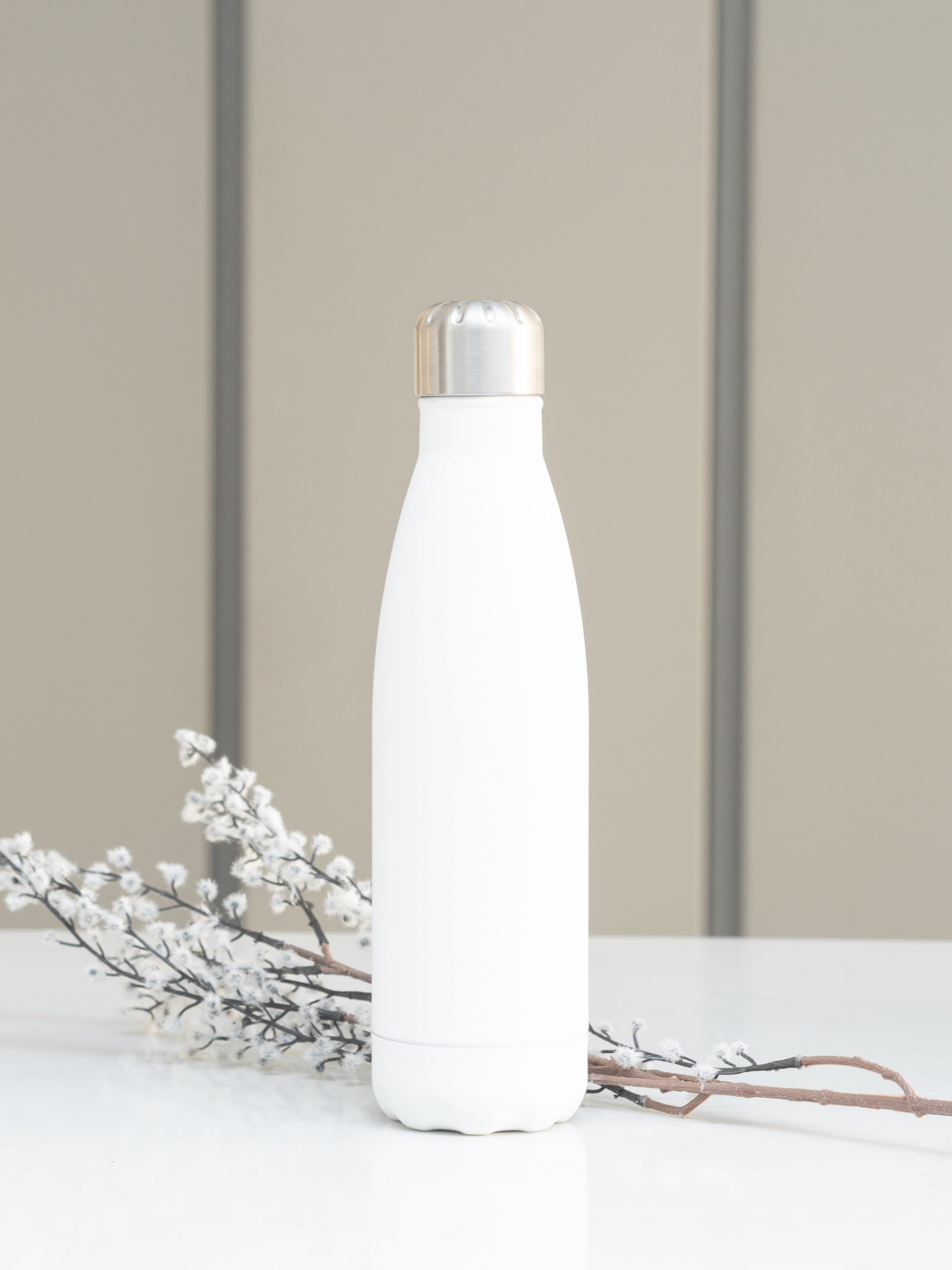 Eine Edelstahlflasche statt einer Plastikflasche. Wer die eigene Flasche bei sich trägt, sorgt außerdem dafür, genug zu trinken. Credit: unsplash/ Vanesa Giaconi