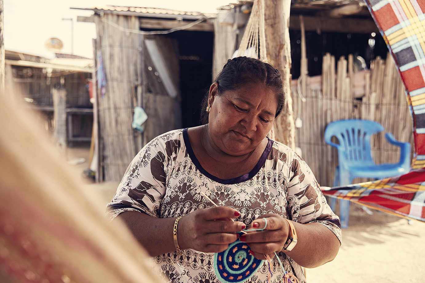 Bei Margarita Epieyúus Nachbar:innen erwacht krachend ein Generator. Dann dröhnt ein Standmixer. Epieyúus Häkelnadeln zucken in ihren Händen, als hätte man auch ihre Finger an die Stromquelle angeschlossen. Doch Epieyúu wird ihren Generator heute nicht anwerfen. Der Benzinpreis hat sich verdoppelt, seit der Schwarzmarkt mit Venezuela wegen der Krise im Nachbarland nicht mehr funktioniert. Epieyúu muss sich jetzt beeilen, wenn sie heute mit einem Viertel der traditionellen Tasche fertig werden will, die das Volk der Wayúu hier an Touristen verkauft.