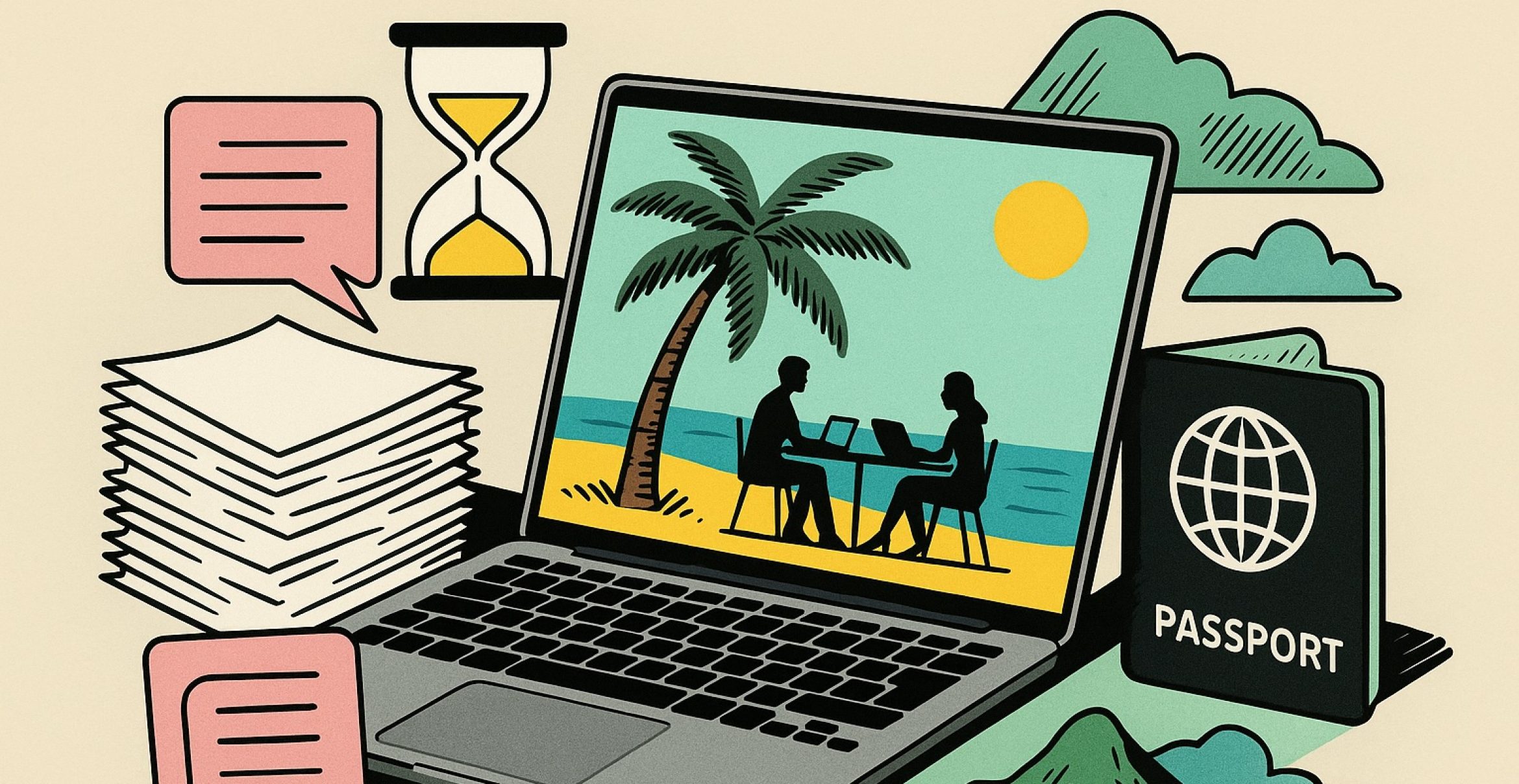 Klar, manche Tage sind typisch untypisch. Wir starten in unsere eigenen Projekte, aber zwischendurch gibt es immer wieder kurzes Palaver, spontane Kaffeepausen am Strand oder schöne Sonnenmomente. So können wir flexibel leben und arbeiten, ohne uns ständig Sorgen um die Verwaltung machen zu müssen. Danach sitzen wir oft bis spät in den Abend an unseren Laptops – nicht, weil wir müssen, sondern weil wir Spaß an der Arbeit haben.